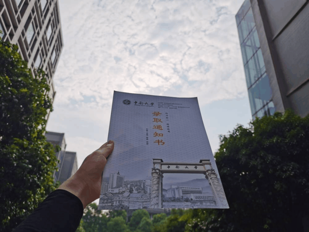 通知书的底纹由湘江水的波纹和岳麓山的剪影组成,凸显了中南大学的地理定位:岳麓山下,湘江之滨,更代表了山水中寄寓的湖湘文化。通知书主体由蓝灰红三色组成,彩色的大门寓意着进入中南大学后开启的多彩生活,灰色的背景中掩映着湘雅校区,铁道校区和新校区的标志性建筑,代表组成中南大学的原湖南医科大学,长沙铁道学院和中南工业大学,突出中南大学多元文化底蕴,多元学科特色,多元人才培养的特点。
