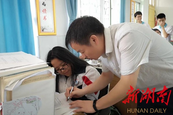 “只要不放弃自己,这个世界就不会辜负任何一个努力的你!”6月30日,谢可欣来到曾经就读过的衡南县星火实验中学进行励志演讲。在该校276班,学弟学妹们都围着今年高考收获好成绩的“轮椅女孩”谢可欣询问各种学习生活上的“小困惑”。