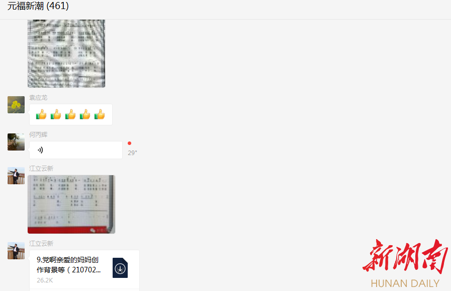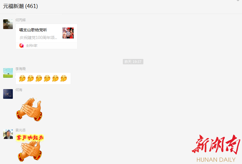 湖南日报·新湖南客户端7月3日讯(记者 徐典波 通讯员 张菲)“唱支山歌给党听,我把党来比母亲,母亲只生了我的身,党的光辉照我心……”7月2日晚,一首首耳熟能详的经典歌曲从汨罗市新市镇“元福新潮”微信群中飘出。