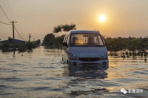 7月25日19时许,河南省新乡市牧野区北原庄村,洪水将道路淹没,面包车被泡在洪水中。