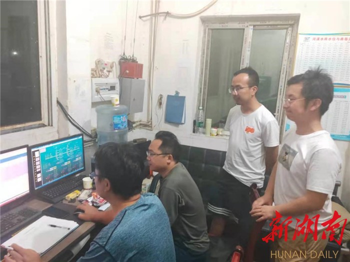 工作人员在吉首市河溪镇河溪电站机房调度水位情况