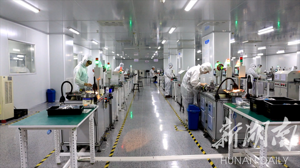 在湖南捷力泰科技有限公司组装车间,工人们正奋战在生产车间,加班加点进行生产。该公司主要生产麦克风、喇叭、蜂鸣器等产品,拥有27项自主专利,是国内唯一可以提供全系列声学产品的制造和应用方案商,与海康威视、大华、小米、富士康等一线品牌进行合作。项目于2019年12月底投产,2020年试生产实现年产值9千万,拥有就业岗位人数500余人。
