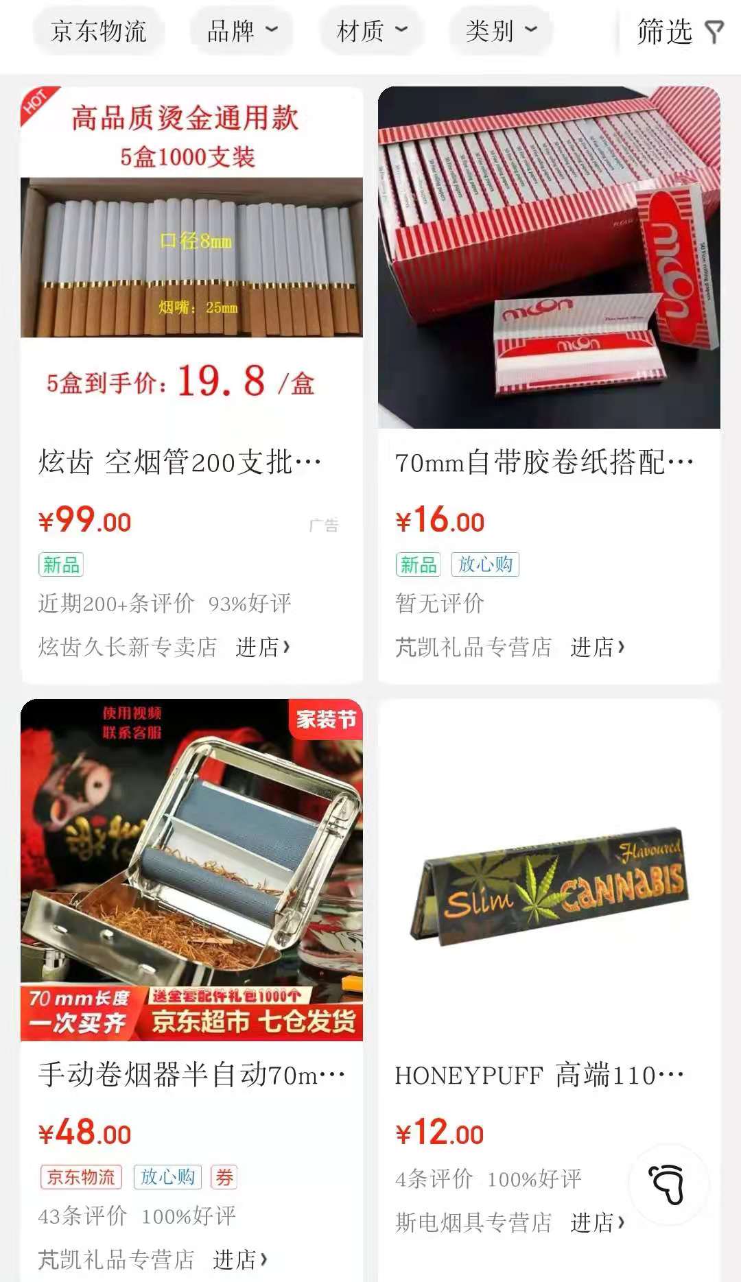 近日,澎湃新闻记者发现淘宝、拼多多平台上有商家涉嫌非法出售烟丝、卷烟纸、滤嘴棒等国家法律规定的烟草专卖品。