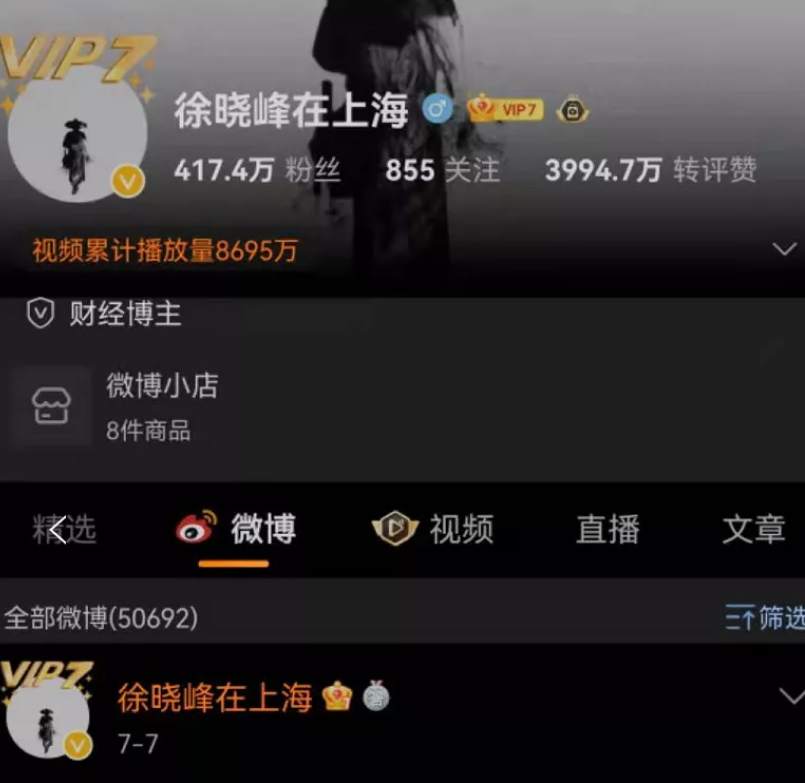 此外,坐拥超400万粉丝的微博大V徐晓峰,在7月7日以后,其微博就已不再更新。