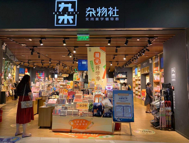 环宇荟购物中心,一家名为“九木杂物社”的文创杂货集合店打出了“开学季”“91文具节”“学霸必备”等各式招牌。笔、本、书包、修改带、便笺本……琳琅满目的新鲜文具散发着吸引力,将路过的孩子家长“拽”进店内。