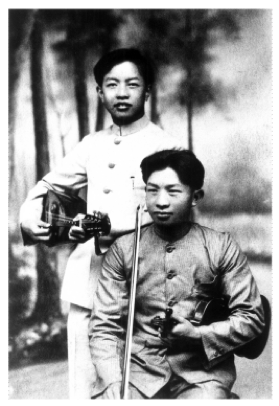 △1930年,聂耳与云南省师范附小音乐教师张庾侯的合影