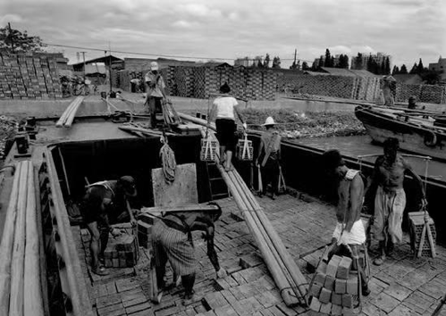 歌曲《码头工人歌》:从朝搬到夜,从夜搬到朝,眼睛都迷糊了,骨头架子都要散了。搬啦搬啦……
