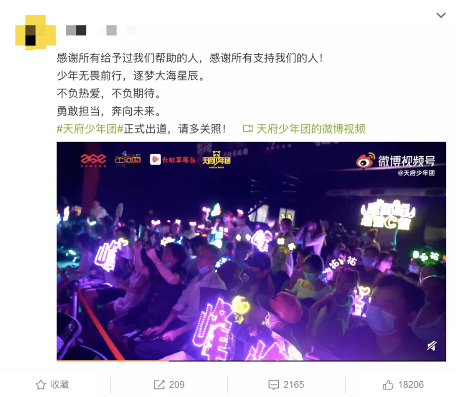 据了解,“天府少年团”是由7位小男孩组成的男子偶像团体,于8月20日晚正式出道,在成都线下举办出道发布会,并发布了全新的组合单曲。