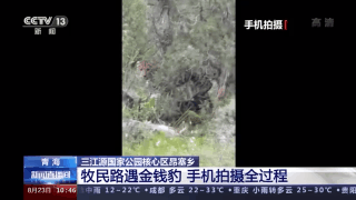 青海省杂多县昂赛乡牧民 达杰朋措:我叫达杰朋措,是年都村二社管护员,前几天在巡山时发现了一只金钱豹,离我很近大概有个十几米,就拿出手机拍了。