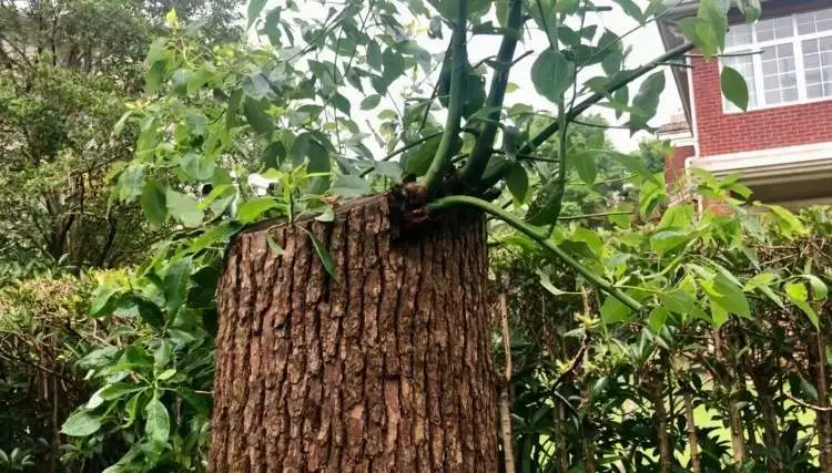 于是他请来工人,将树的分枝全部砍除,剩余2米多高的主干。