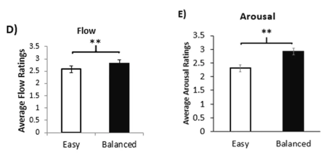 而后,通过回答问题的方式,研究人员对不同类型游戏玩家的心流状态、唤醒水平进行评分。