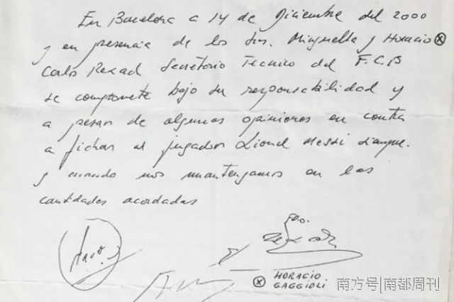 2000年12月14日,巴萨教练用一张纸巾和梅西签下了合同。
