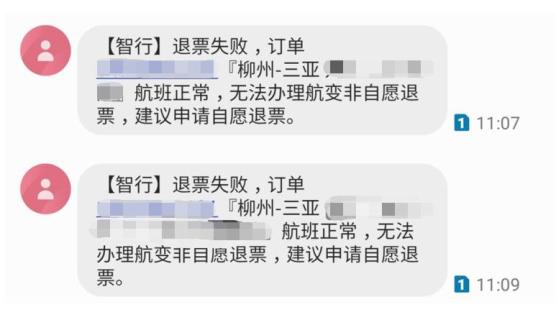 遇到同样问题的还有湖南的廖女士,她在智行App提交全额退款申请同样遭拒。“说不满足全退条件,无法办理航班的非自愿退票。”