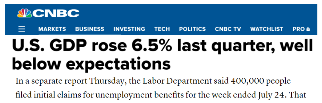 此前一周,由于新冠病毒德尔塔变异毒株在美国迅速扩散,导致劳动力市场不如预期,首次申请失业人数大幅上升至42.4万人。