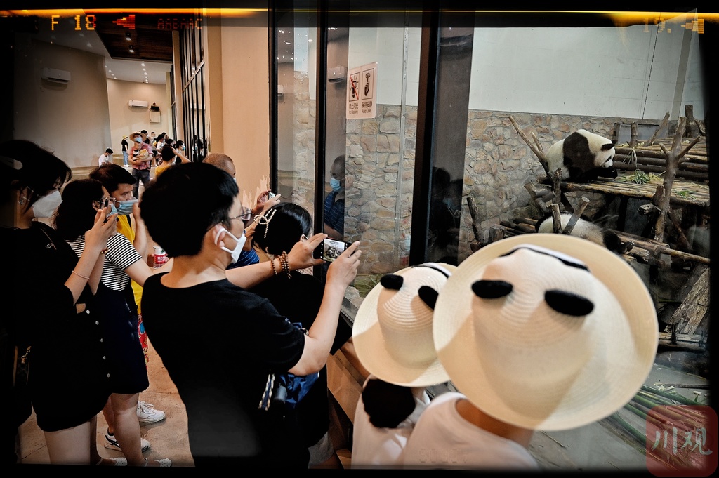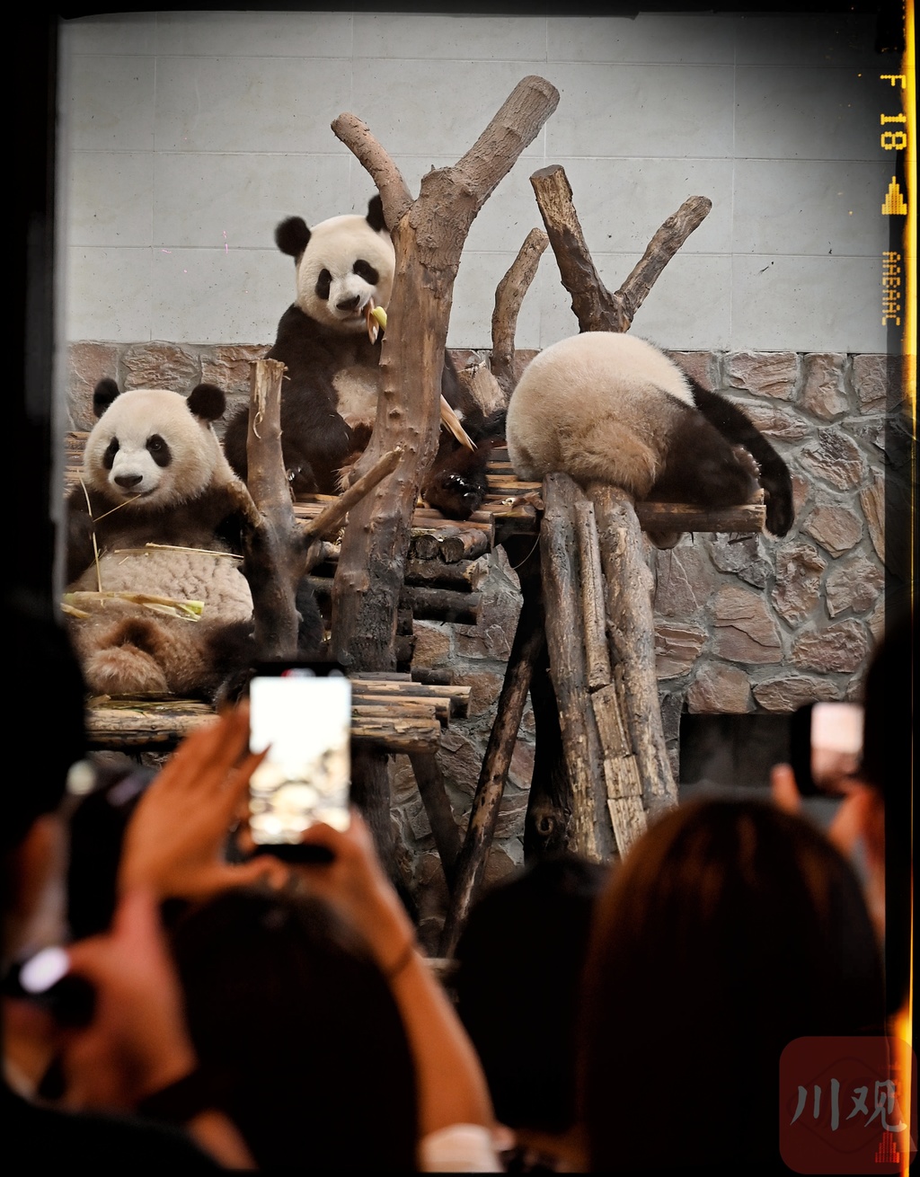 3只一般大的熊猫同居一室,尤其是好动的大耳朵金宝,吸引了许多目光。“这么活泼的性格,‘战斗力’又强,看着就好玩。成都将要举办的世界大学生运动会,大耳朵金宝要是当吉祥物真身再好不过,还可以代言成都火锅,耳朵上散漫豪放的毛发就是火焰,看着比米奇老鼠还乖。”参观者们聊得脑洞大开,意犹未尽。