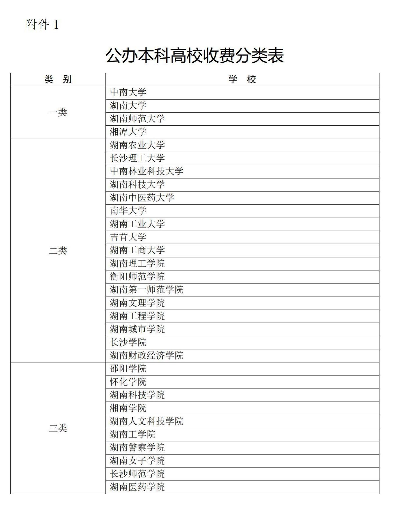 我省大中专院校学费按办学层级分类,包括:公办本科高校(分为一、二、三类,见附件1)、独立学院、公办高职专科学校和中职学校。
