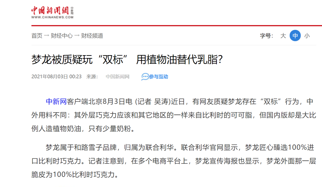近日,某知名品牌的冰淇淋因国内外用料不同而引发网友热议。