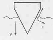 当运动员双臂上举,双手合掌呈尖锐状姿势入水时,可等价于一个楔形刚体的尖端撞击水面(如下图所示)。