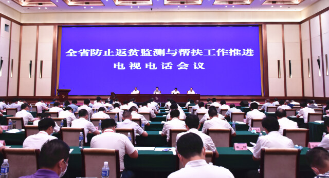 (图说:全省防止返贫监测与帮扶工作推进视频会现场。)