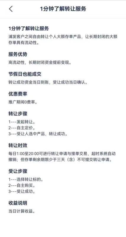 8月5日,浦发银行在微信公众号发布消息,该行已上线个人大额存单转让功能,客户可通过手机银行实现个人大额存单产品自由转让,只需发起转让、自主定价、转让挂单成功三步就可完成。