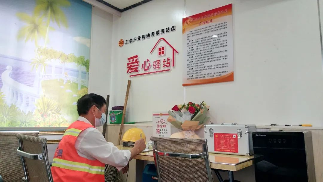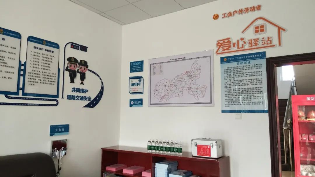 经过两个多月的精心选址、积极建设,工会户外劳动者爱心驿站按照一套桌椅、一台微波炉、一台饮水机、一套冷暖电器、一个应急药箱、一处充电插座的“六个一”标准配置,目前在宁乡农商银行玉潭支行、白马桥支行、沩东支行,玉潭街道汽车南站环卫工作间、城郊街道东沩广场环卫工作间,交运系统养鱼塘公路超限检测站、菁华铺公路超限检测站及中国建设银行宁乡沩滨支行(宁邦广场)均建设完成,现已成为环卫工人、市政工人、快递小哥、司机、交通警察(协管员)等户外劳动者及市民临时休息、乘凉保暖、饮水热饭、充电阅读的免费服务场所。