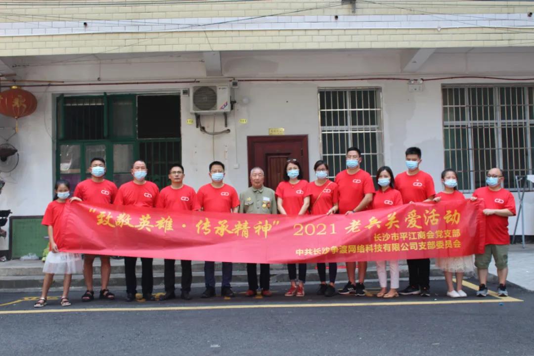 新湖南客户端8月3日(通讯员 张毕斋)7月31日,长沙市平江商会党支部与长沙争渡网络科技公司党支部联走进红色热土平江,联合开展“致敬英雄·传承精神”2021老兵关爱行动“八一”慰问活动。长沙争渡网络科技有限公司董事长郭铖、总经理方樱花,长沙市平江商会党支部委员余欢礼率两个支部的党员和入党积极分子代表参加活动。《魅力平江》总编何红卫,平江县向日葵助困协会会长施定国受邀参加。