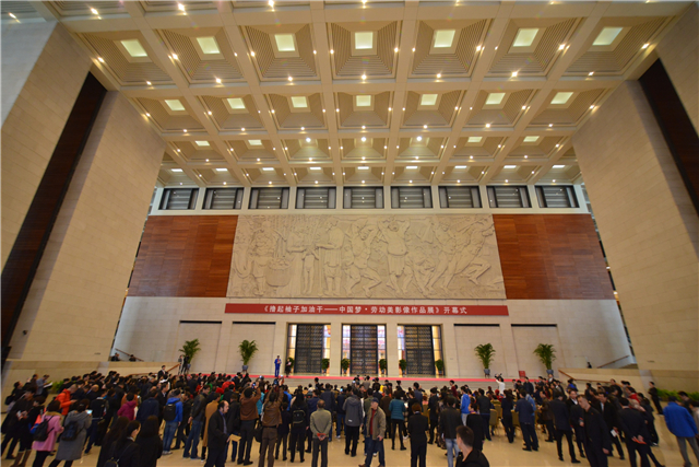 (《撸起袖子加油干——“中国梦,劳动美”》影像作品展开幕式现场)