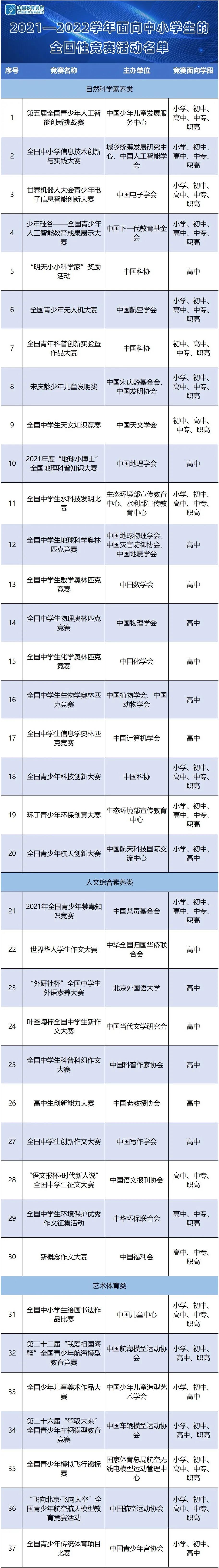 面向中小学!教育部公示37项全国性竞赛活动名单
