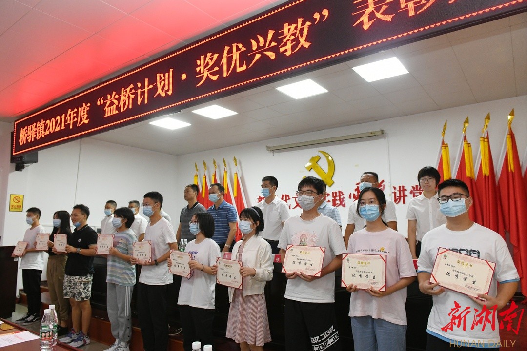 湖南日报·新湖南客户端8月25日讯(记者 唐璐 摄影记者 范远志 )教育兴则国家兴,人才兴则乡村兴。今天上午,望城桥驿镇组织召开“益桥计划·奖优兴教”2021年中高考优秀学生表彰大会,23名优秀教师及183名优秀学生接受表彰奖励。