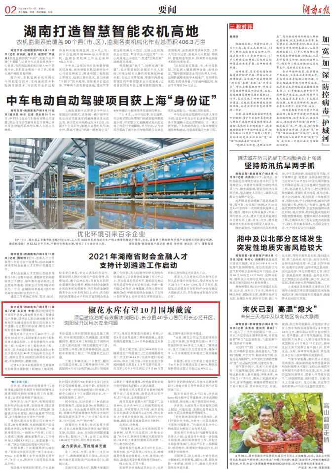 湖南日报·新湖南客户端8月10日讯(记者 王文隆 金慧 摄影 范远志)抓好疫情防控不误项目进度,湖南椒花水库工程建设马不停蹄。项目法人单位湖南椒花水利枢纽开发建设股份有限公司负责人今天透露,经过数月的奋战,椒花水库工程有望在10月围堰截流。
