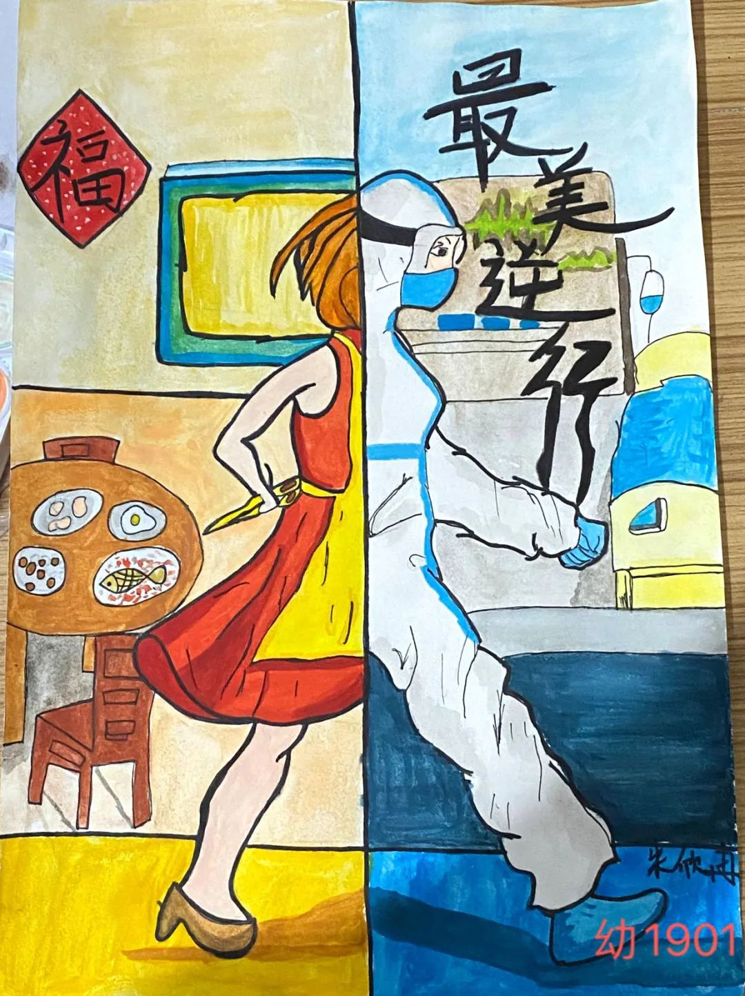 学前教育学院积极开展抗疫宣传工作,在学前教育党支部书记杨入初的号召和组织下,学院各班级纷纷开展“万众一心,同心抗疫”的主题美术作品征集活动。同学们充分发挥美术特长,设计制作海报、绘画、剪纸,超轻黏土等手工作品,展现株洲师专学子们关爱生命健康和积极助力抗疫的决心。