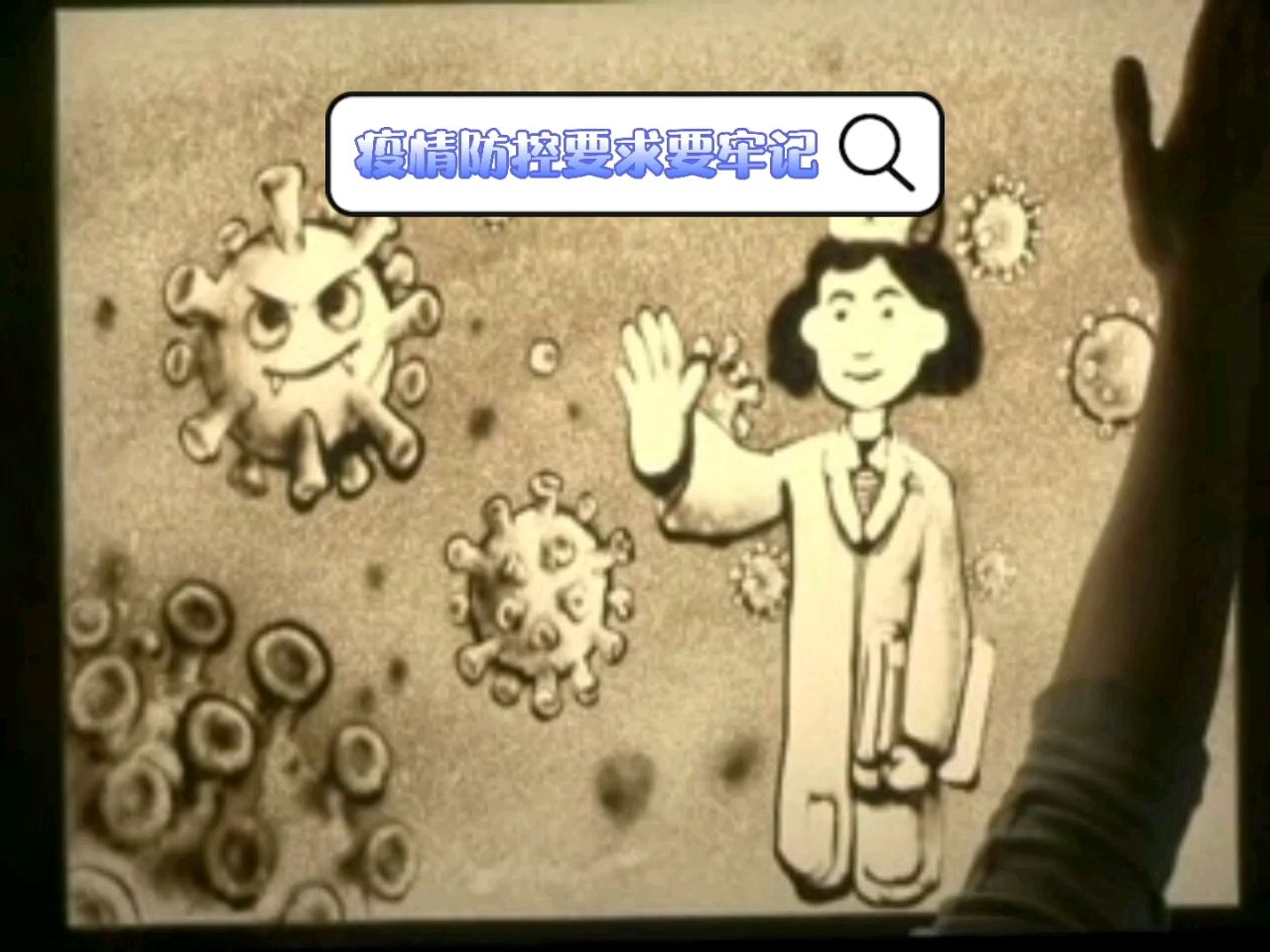 颗颗沙砾满怀家国情,在去年防疫期间,学前教育学院美术教师谭毅就已经创作过同类型作品。今年暑期,谭毅老师感动于全民坚守、抗击疫情的同心协力,满怀激情创作了新的抗疫沙画作品《我是疫情防控宣传员》,提醒大家做好防疫措施及抗疫过程中需要注意的事项。