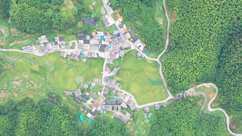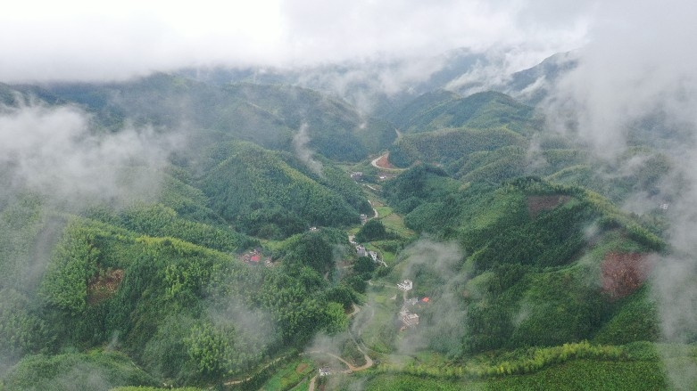 8月18日,一阵秋雨过后,新田县千马坪瑶族村,山间腾起缕缕云雾,蜿蜒曲折的公路和一幢幢房子在云雾中若隐若现,碧绿的田园与青山互相映衬,宛如仙境,让人如痴如醉。蒋军君 摄