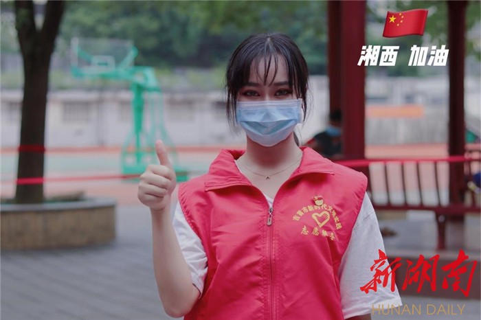 我叫邵露,是湘西州妇幼保健院检验科一名95后年轻党员,面对严峻的抗疫形势,我主动请缨,第一时间加入了青年志愿者服务队,来到吉首市铁路中学核酸检测采样点,尽心尽力做好秩序维护、政策宣传等工作。