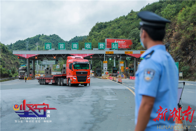 8月10日,湘西州公安局吉凤分局民辅警在吉首南高速路口检查过往车辆。