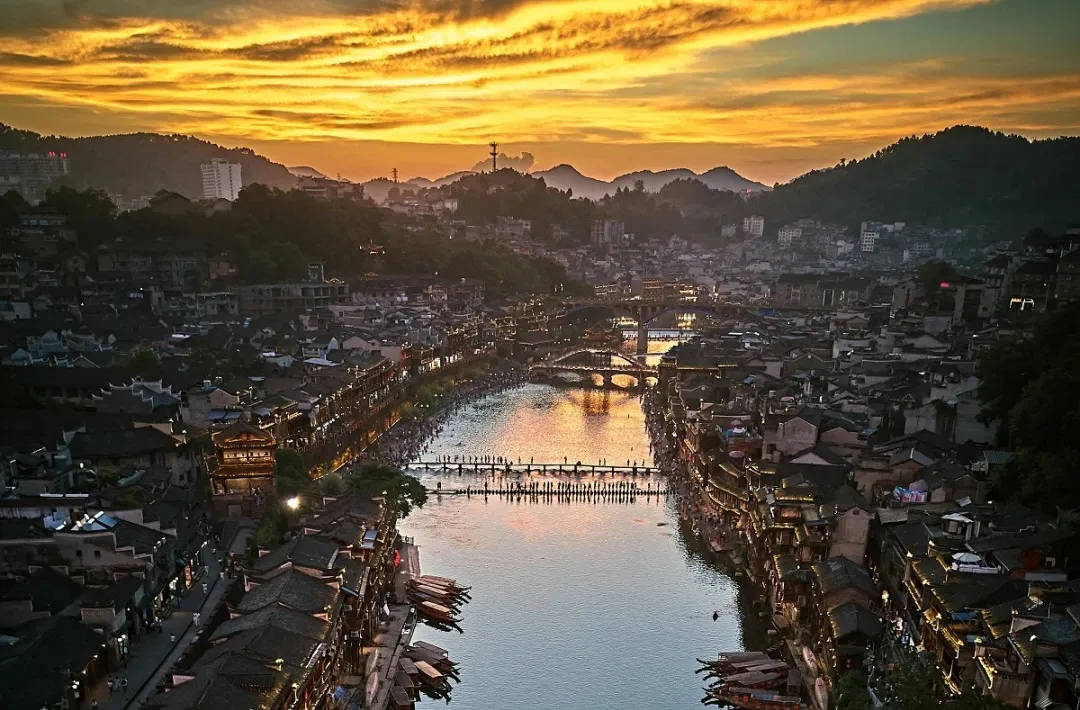 困境逢生,2020 年凤凰县凭借优异的成绩,入选国家全域旅游示范区,荣获“2020 博鳌国际旅游奖年度精品目的地金奖”“2020 中国旅游百强县”“新浪 100 个微博年度旅行地”等荣誉称号,迅速成为抖音快手等短视频平台网友争相打卡的“网红景区”。