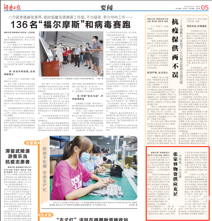 7月30日,张家界发布通知,要求所有居民非必要不外出,所有居民小区实施封闭管理。为保障群众居家防疫基本生活需求,张家界构建“全链条”保供平台,畅通生活必需品的储备、销售、运输渠道,全力保障城乡居民生活必需品供应充足、价格平稳。