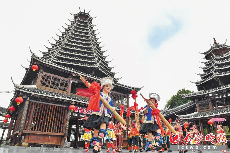 芷江万和鼓楼前的芦笙舞表演。图片均为长沙晚报全媒体记者 邹麟 摄