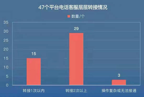 智能客服不“智能”,无法解决消费者的问题,于是更多的消费者希望寻求人工客服的帮助,不料却遇到智能按钮层层转接,操作繁琐,人工客服接通率低,无法拨通,甚至是“套路”消费者的情况,咨询和投诉反而变得更加困难。(48家平台中其中一家无客服电话——记者注)