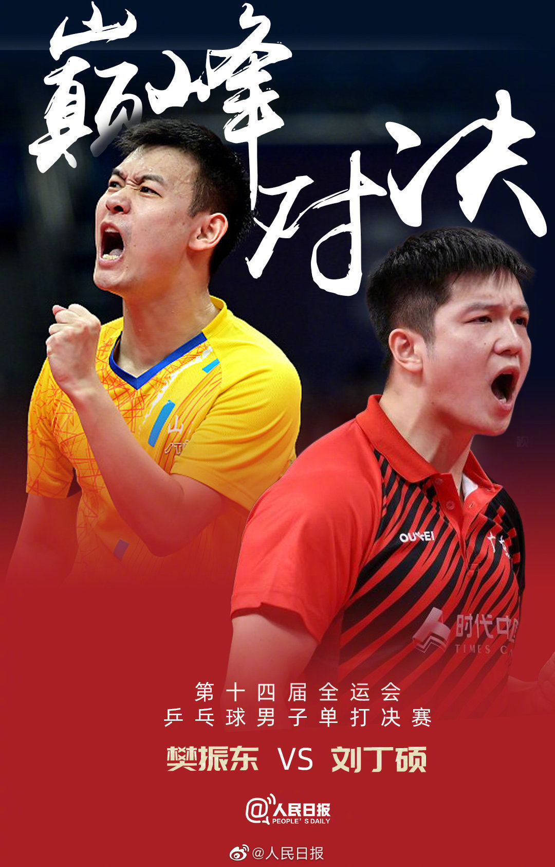 樊振东VS刘丁硕!全运会乒乓球男单决赛今晚开战