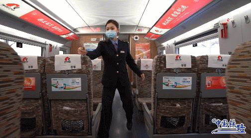 当动车组列车到达终点站后,司机只需要走到另一端车头上岗,即可完成列车换向运行。列车员这时候就要手动调整座椅方向,她们只需轻轻一踩这个小踏板,座椅靠背就会回弹,此时,再握住座椅上方的黑色把手,用力一甩、一摆,座椅换向就完成了。