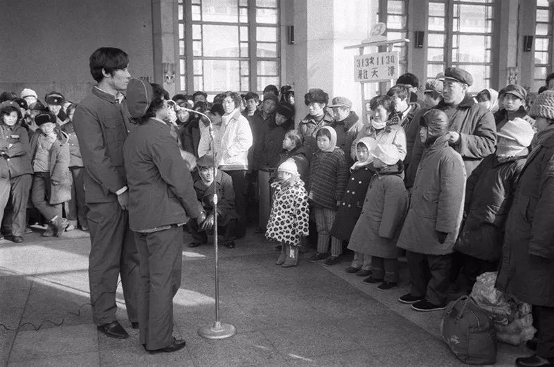 △1984年的春运,当时的北京火车站组织职工业余文艺演出队,轮流到候车室为旅客演出文艺节目。