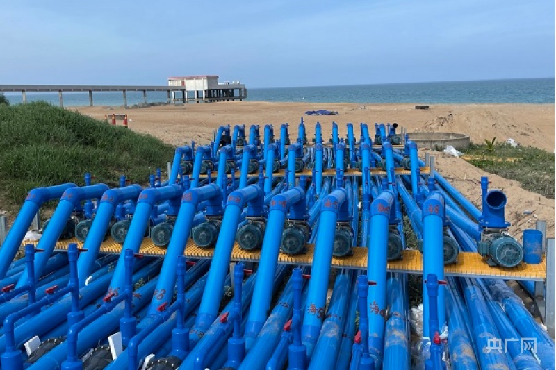 海滩上随处可见抽水井和排水管 央广网记者 钟宁 摄