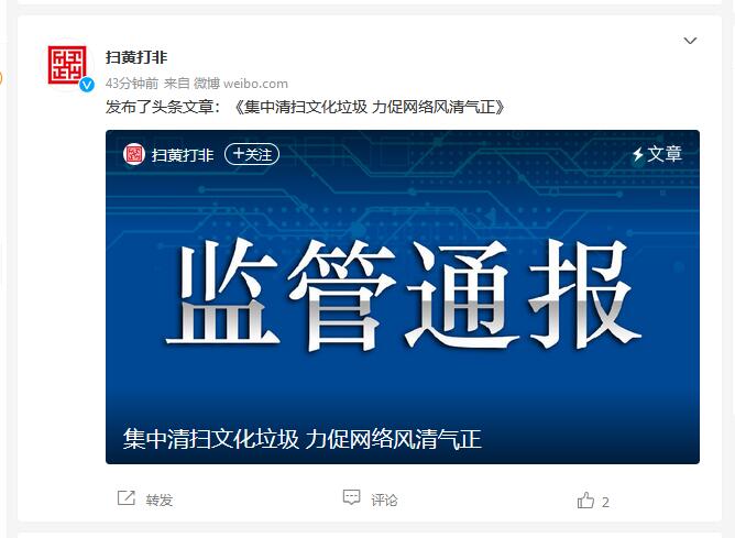 9月7日,@扫黄打非 通报“净网”集中行动阶段成果:按照全国“扫黄打非”工作小组部署,中央宣传部、中央网信办、工业和信息化部、公安部、文化和旅游部、国家广播电视总局今年6月起共同开展的“净网”集中行动,目前取得阶段成效。六部门集中力量、细化部署、协同作战,着重整治网上历史虚无主义、涉黄涉非、涉低俗等有害信息,深度清理有悖社会主义核心价值观的网络内容。据不完全统计,6月至8月底,执法监管部门共查办涉网络行政和刑事案件822起,处置低俗有害信息40余万条,取缔关闭网站4800余个;督促网站平台清理低俗有害信息2000余万条,处置违法违规账号800余万个。