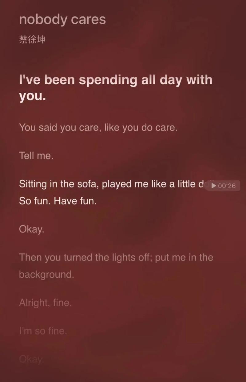 《nobody cares》的歌词是这样的: