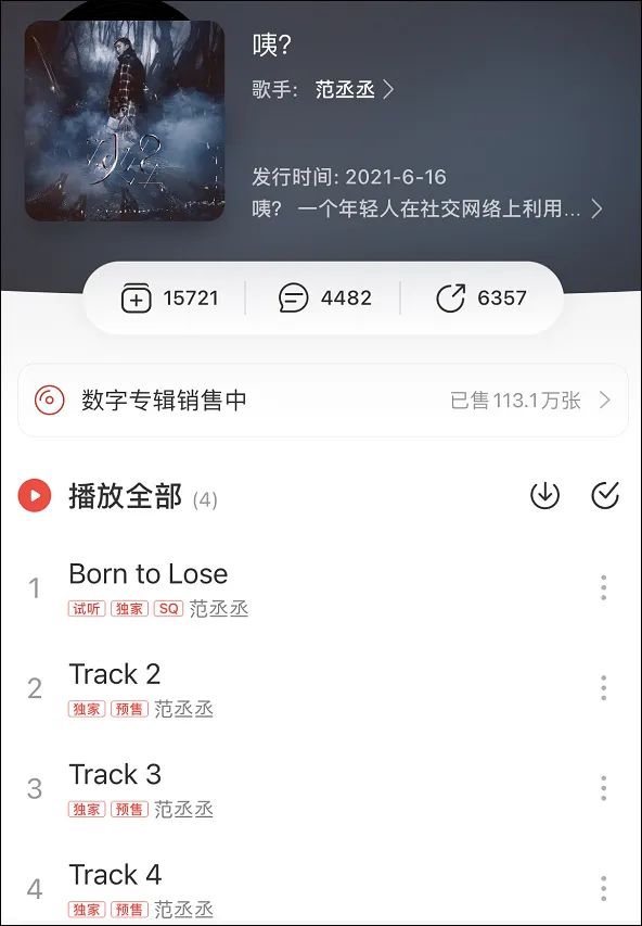 这张专辑在音乐平台上售价26元,售卖金额已超过8000万元。