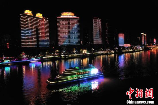 汉江水位回落,襄阳夜游游轮恢复通航。 (杨东 摄)