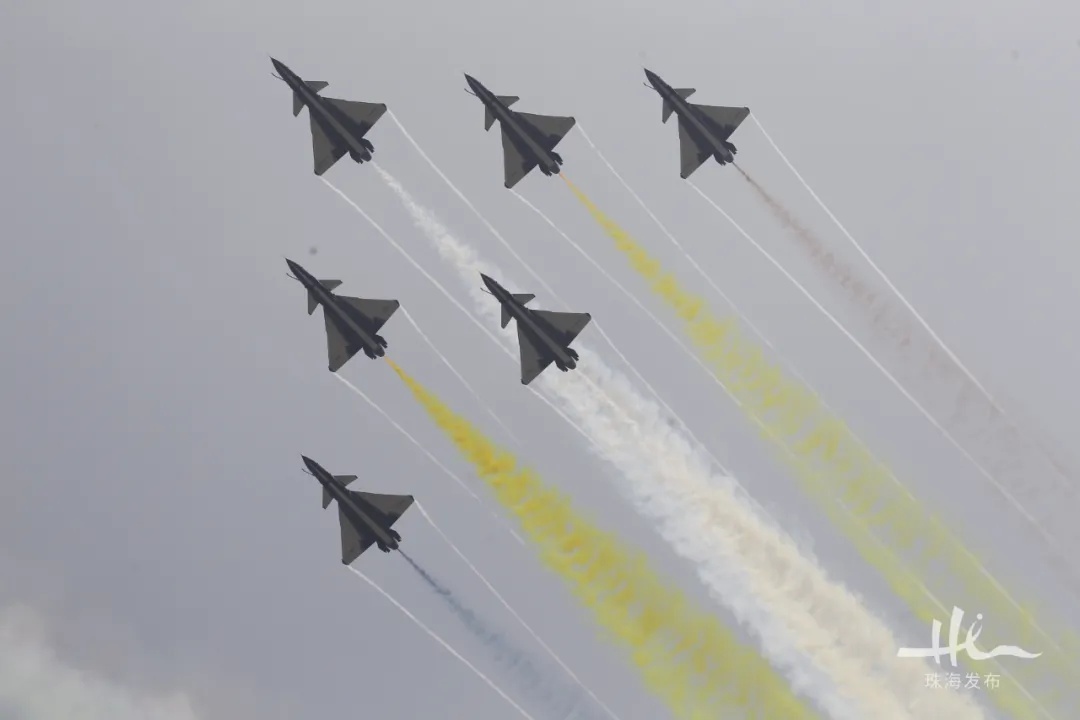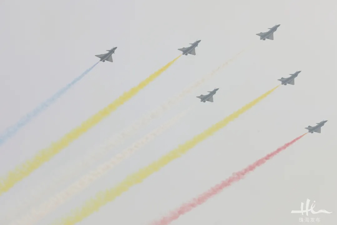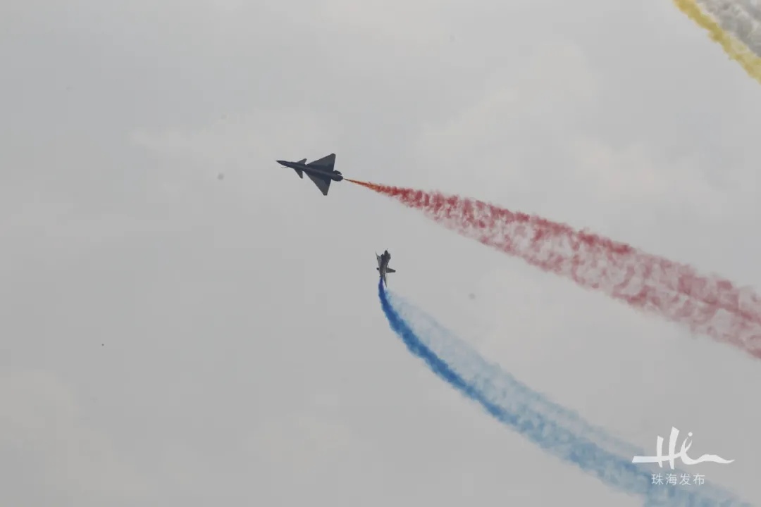 开幕式结束后,精彩纷呈的飞行表演随即闪耀亮相。首场飞行表演,空军“八一”飞行表演队、中国空军航空大学“红鹰”飞行表演队联袂展翅蓝天,歼-20、教-10为观众带来军机飞行表演,翼龙2、双尾蝎A两款无人机,以及AG600和青春珠海号进行中国航展飞行“首秀”,中国商飞CBJ公务机展翅翱翔。