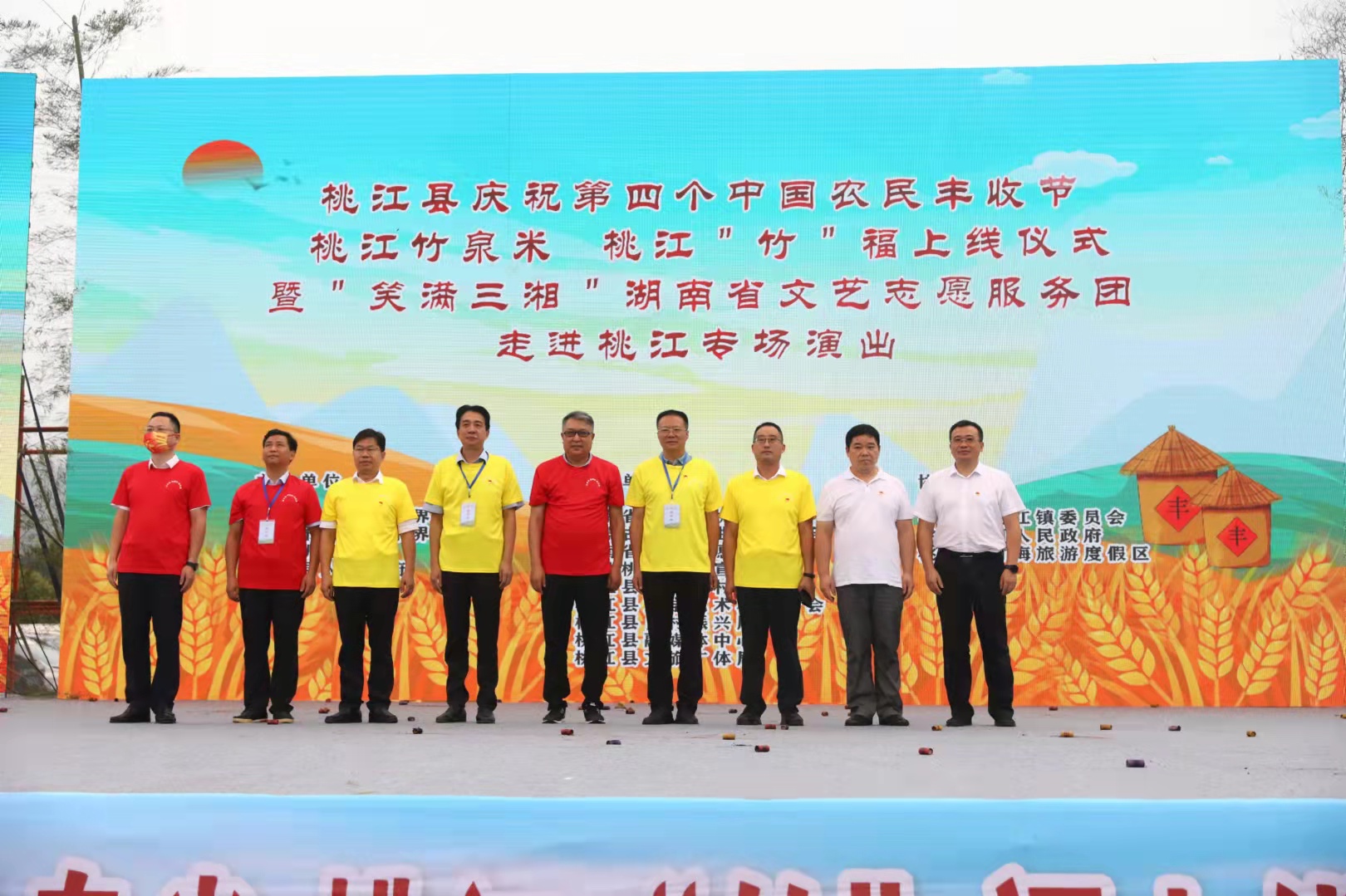 竹香飘四海,桃花映九州。9月27日,丰收的喜悦挂上广大农民朋友的眉梢,“庆丰收 迎国庆 颂党恩”庆祝第四个中国农民丰收节——桃江竹泉米、桃江“竹福”上线仪式暨“笑满三湘”湖南省文艺志愿服务团走进桃江专场演出在桃江县举办。