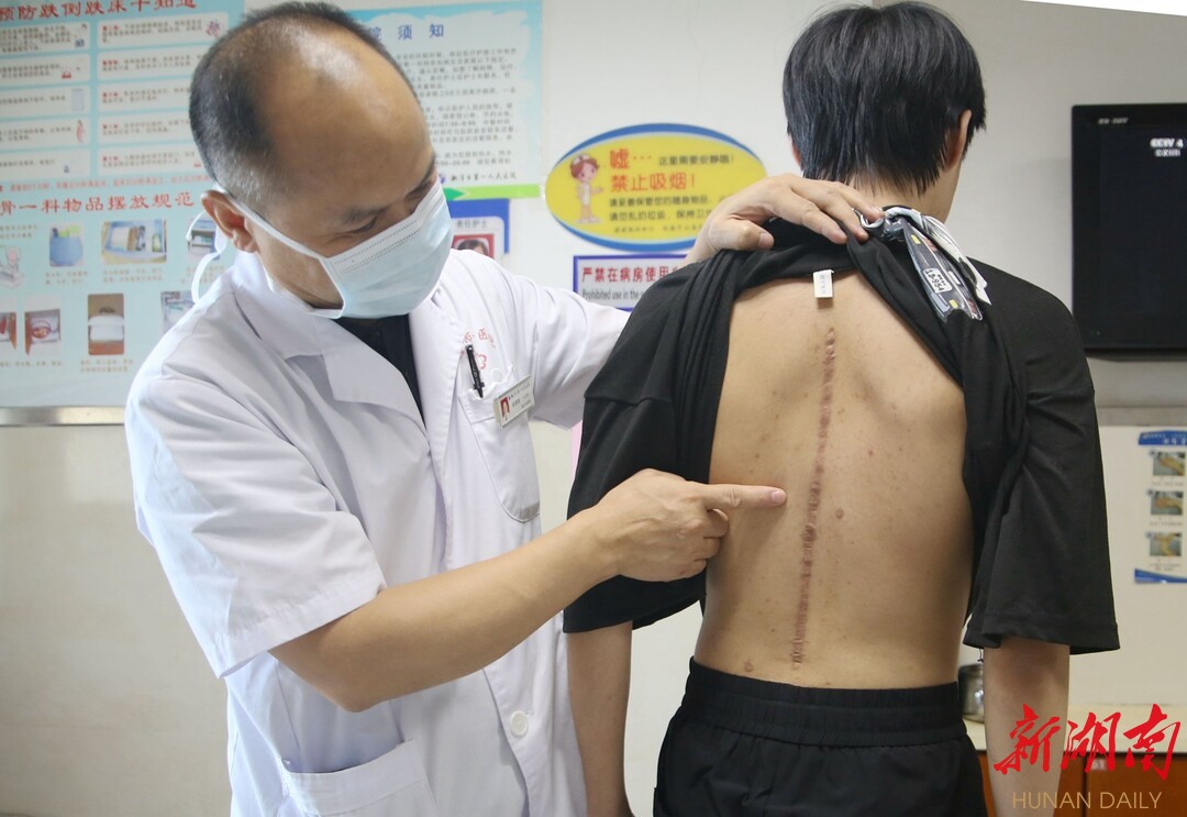 大众卫生报·新湖南客户端讯(通讯员 段斌)9月27日,今年16岁的徐帅(化名)迎来了开心的日子,伴随他405天的16枚椎弓根螺钉光荣“退役”了。当徐帅的父亲接过医生从儿子胸腰椎骨上取出来的16枚螺钉,一直悬着的心终于放下了,他将螺钉精心保管、以留作了纪念,并激动地对湘潭市第一人民医院骨科副主任医师吴楚君说:“是您用这16枚螺钉挽救了我儿子半身不遂,不然我15岁的儿子怎样过完瘫痪的一生啊?要感谢您高超的医技挽救了我儿子、更是挽救了我们全家。”